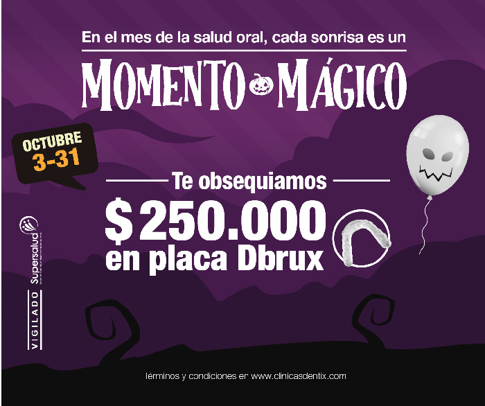 Del 3 al 31 de octubre te obsequiamos $250.000 para que cuides tu sonrisa. adquiere tu placa Dbrux con un precio especial y comienza a dormir mejor cada noche.
