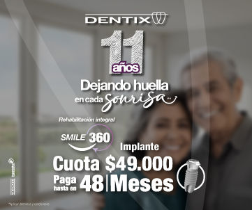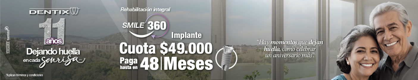 Promoción válida del 1 al 30 de abril del 2026. Aplica para tratamiento de implante dental. Cuota de implante por $49.000 pagando en 48 meses. Monto por financiar $ 1.149.000, en un plazo de 48 meses, valor de la cuota mensual $49.000 a una tasa de 1,892% NMV (equivalente a 25,23% E.A. tasas del mes de febrero del 2026.) financiación sujeta a estudio, aprobación y políticas de financiación de cada entidad aliada, de acuerdo con perfil del cliente. No incluye seguro ni aval. La tasa y cuotas aplicables están sujetas a cambios mensuales por parte de los aliados financieros. El valor de la cuota no es compatible con ningún descuento. Aplican condiciones y restricciones. Incluye cirugía de colocación de implante, implante dental de titanio biocompatible, 2da fase quirúrgica, tapón de cicatrización y radiografías de control. No acumulable con financiación DFS. Ni Welli tasa cero o subconvencionada. Aplican condiciones y restricciones.